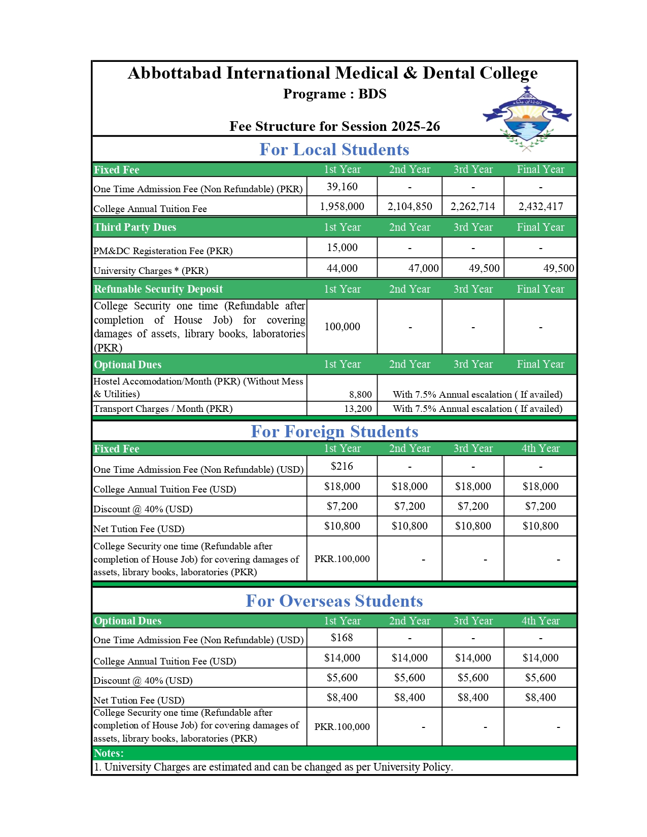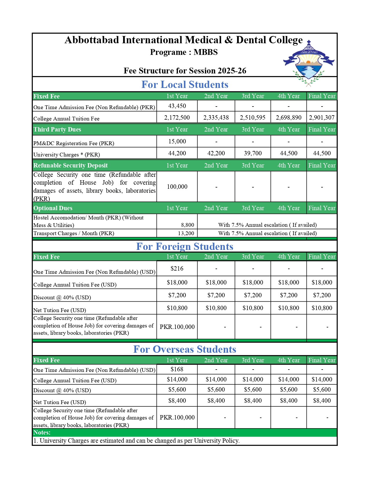 - Abbottabad International Medical Institute P.O. Abbottabad Public School, Mansehra Road Abbottabad, Pakistan